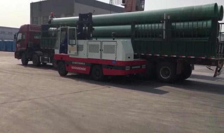 運輸時,所叉取的長條形貨物安放在車身一側貨臺上,搬運、堆垛過程中,通過性好,機動性高。