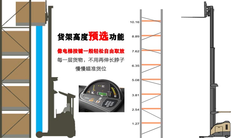 二、方便的貨架高度預(yù)選功能,高位取/放貨輕松高效