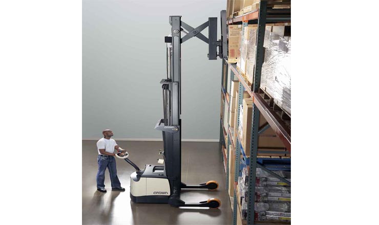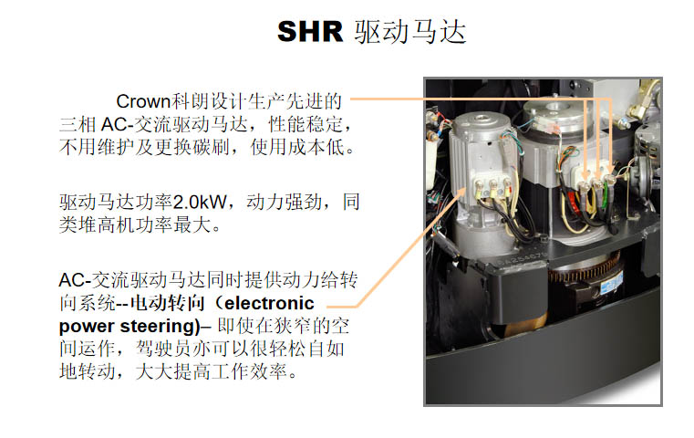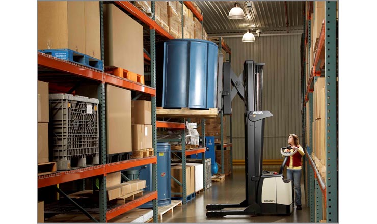 超小轉(zhuǎn)彎半徑——  Crown-科朗SHR系列步行前移式叉車,通過新型控制器和緊湊設計提升操縱性,具有前移式叉車中較小的轉(zhuǎn)彎半徑(1510mm)和較小的直角堆垛通道寬度(1.1m*1.1m托盤,直角堆垛通道寬度不足2.3米),超常狹小空間內(nèi)也能方便使用。