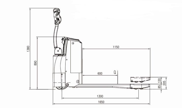 它以蓄電池為動(dòng)力,電機(jī)驅(qū)動(dòng)行走、提升,操縱手柄集中控制;