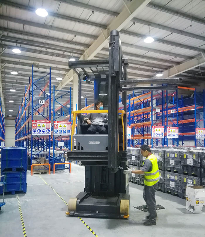 科朗TSP系列特窄通道三向叉車,可以實現(xiàn)在1.6-2米巷道內(nèi)存儲17米以上高度貨架的托盤貨物,托盤儲位可增加30%-50%,同時所有的托盤都能夠隨時存取。特別適合在非常狹窄的通道及高位運作。