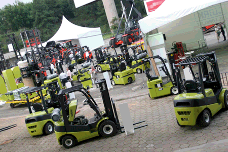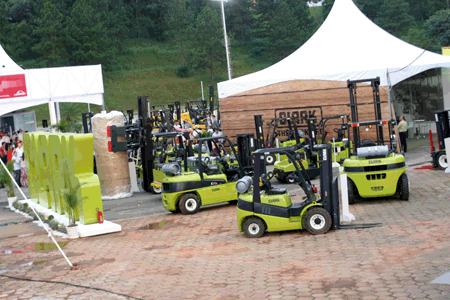 CLARK,身著傳統(tǒng)環(huán)保CLARK綠色元素的標(biāo)準(zhǔn)圖案閃亮登場(chǎng),12臺(tái)品字排開,氣勢(shì)奪人,另有配件展示在集裝箱區(qū)域內(nèi)做演示,展示強(qiáng)大售后服務(wù)力量,這是其品牌目前所不能披靡的。CLARK的亮點(diǎn)吸引了眾多的客戶和同行前來(lái)參觀。由于參展產(chǎn)品的創(chuàng)新性及強(qiáng)烈的美國(guó)優(yōu)良品質(zhì)特性,吸引了眾多感興趣的客戶簽約及洽談后期合作。
